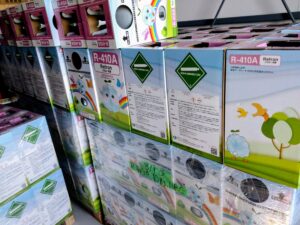 エアコンに追加充電する冷媒ガスが納品されてきました(o^―^o)ニコ